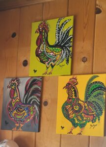With no traditional training Mary Lou one day picked up a paint brush and a set of water colors, probably a set that belonged to her now grown daughter, and started to paint. The first thing she painted was the Coca Cola girls from a serving tray she had laying around the house. Remarkable she was very good at it. She kept painting sometimes on the walls and furniture in her house. Eventually she decided to take an adult class to improve her skills. The instructor asked her what type of medium she was interested in using. Mary Lou didn’t know what the art
